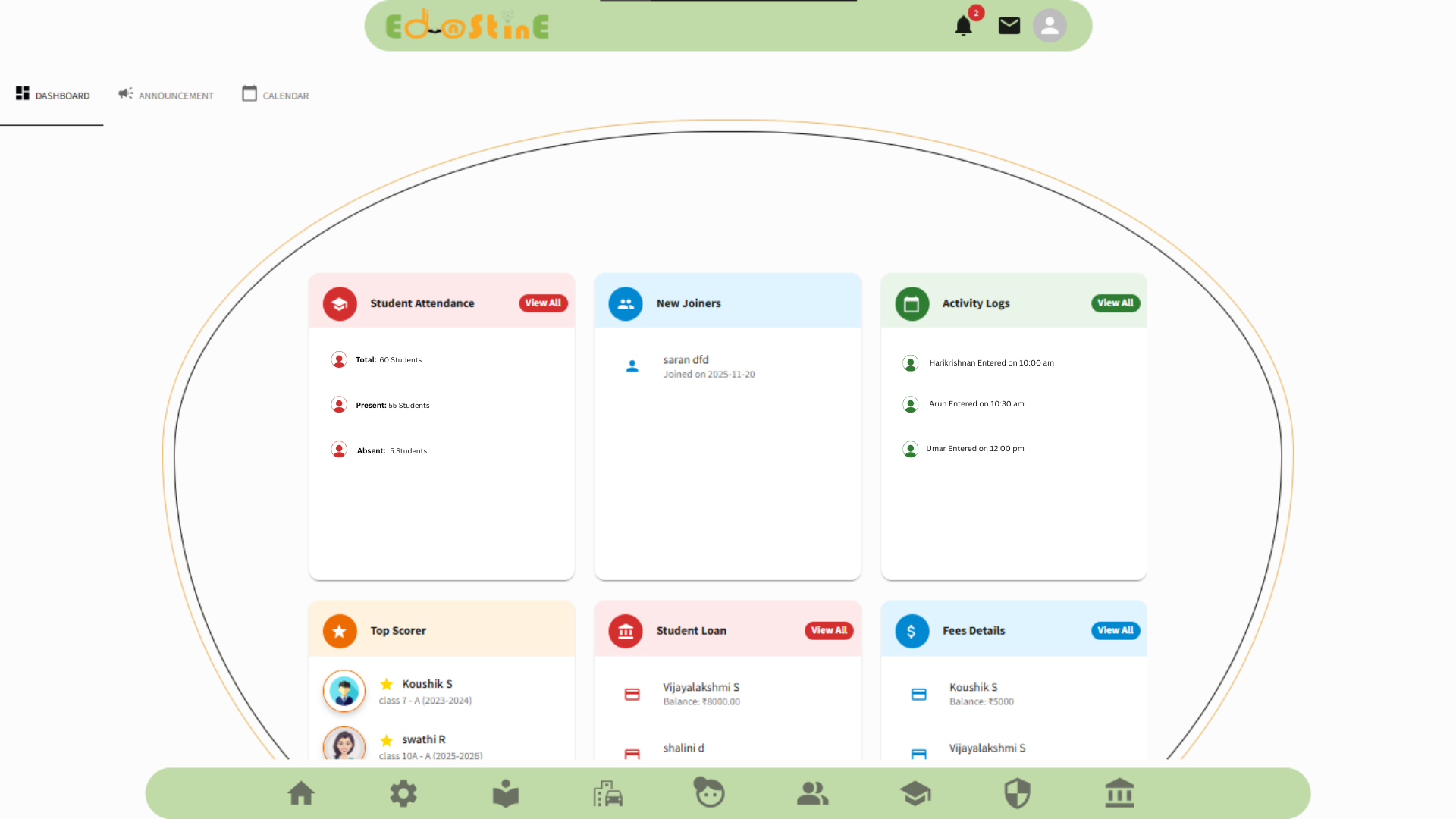 Edinstine simplifies school administration with an all-in-one platform for fee payments, attendance tracking, payroll, curriculum and more. It enhances communication between schools and parents through real-time updates and transparent access to academic progress. With features like bus tracking and automated notifications, Edinstine ensures safety, efficiency, and engagement.