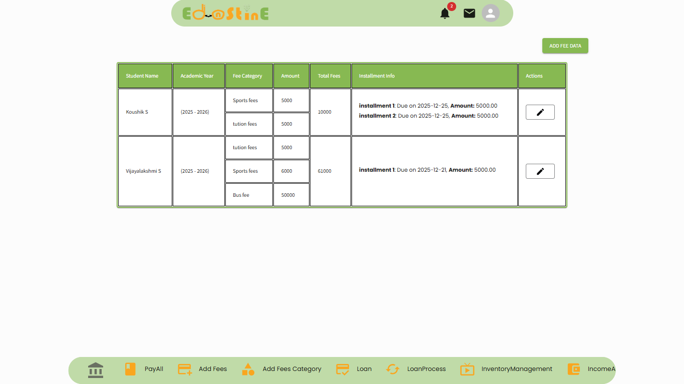 We constructed Edinstine, which enhances school administration efficiency by integrating key management functions into a single platform.