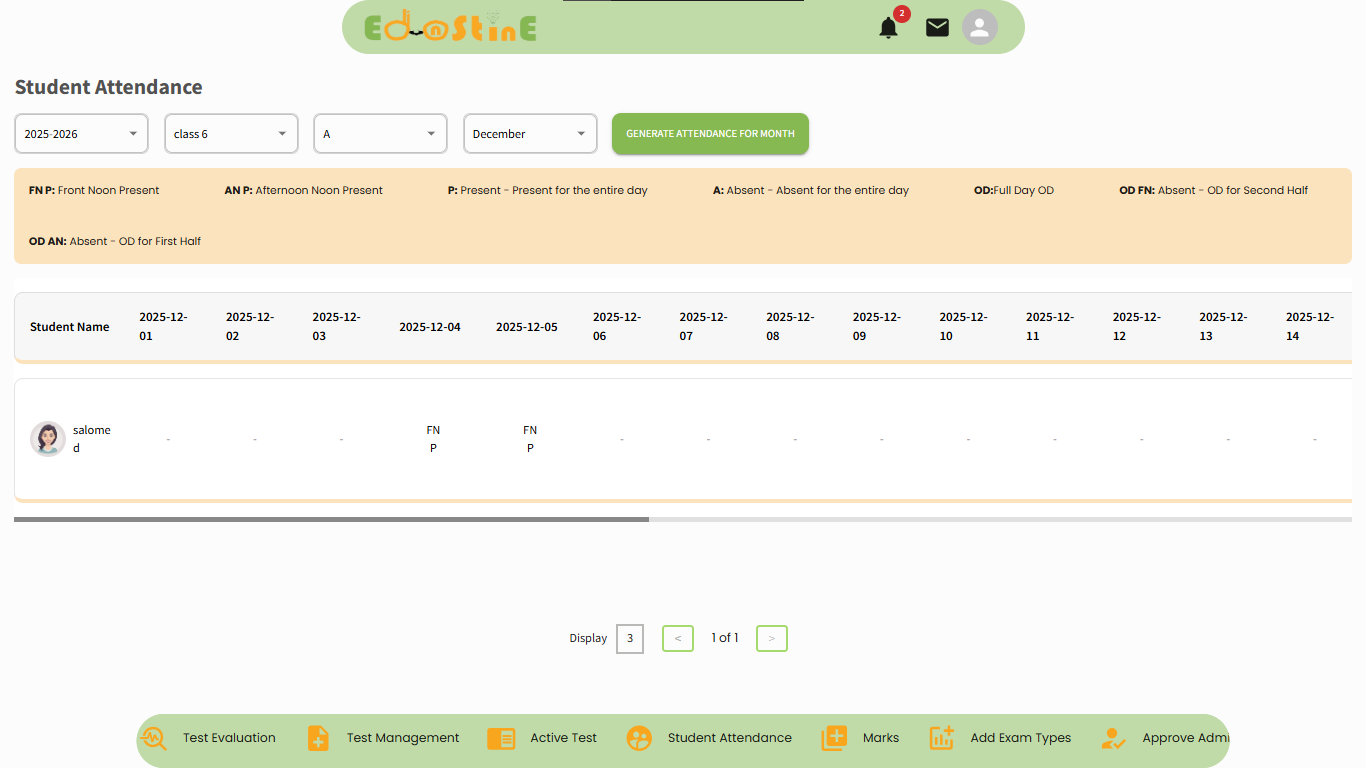 Log in to your Edinstine dashboard and click the Attendance or Timetable icons to view your records instantly. You can see a color-coded calendar for your presence and a detailed daily schedule of all your upcoming classes.